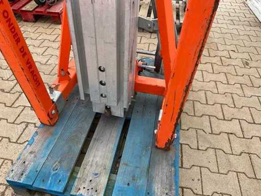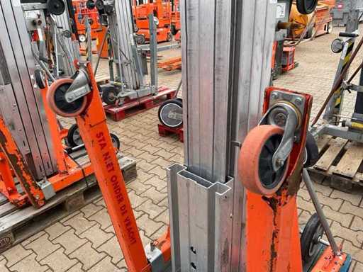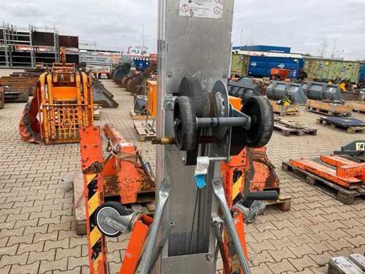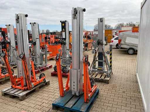 handbediend: ja; max. hefhoogte: 5500 mm; max. hefcapaciteit: 296 kg; totale afmeting L: 860 mm; totale afmeting B: 800 mm; totale afmeting H: 2130 mm; eigen gewicht: 146 kg; omschrijving: handbediend; verrijdbaar; gegalvaniseerd staal; staalkabellier; opklapbaar onderstel; staalkabellier; toepassing: onderhoudswerkzaamheden / montage werkzaamheden / installatie werkzaamheden; incompleet; working condition not verified.