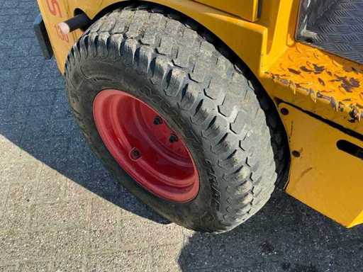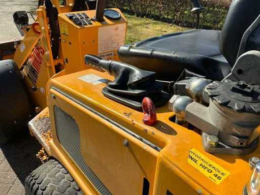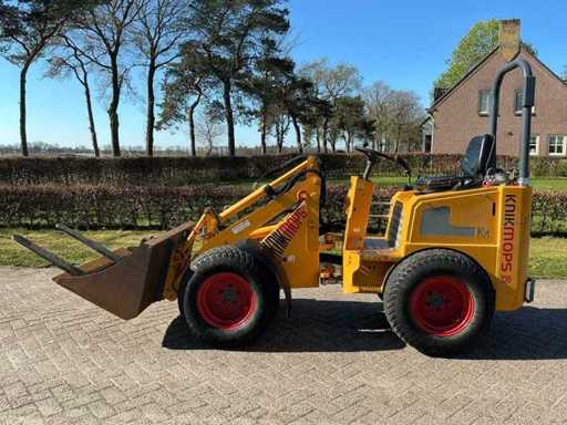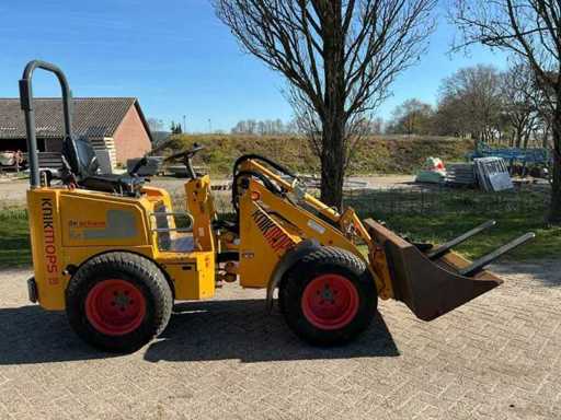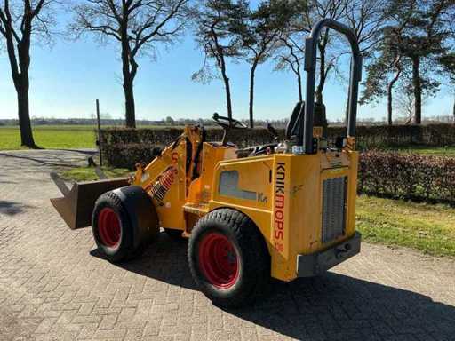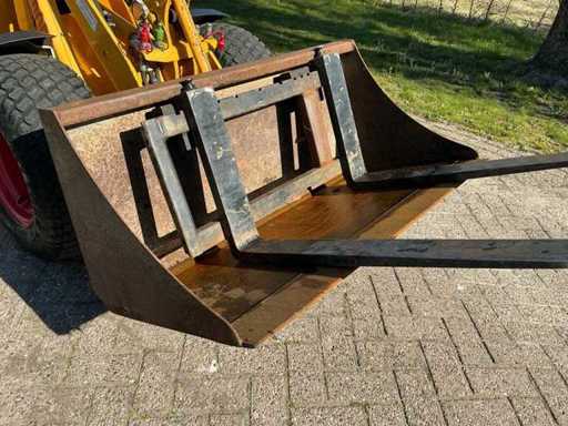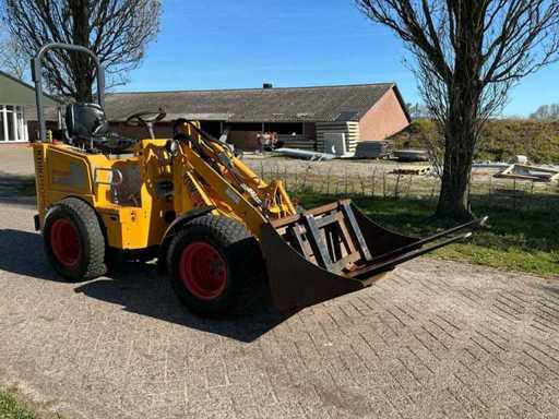 Voorzien van: hydraulische snelwissel, knikbesturing, extra lepels, schepbak, 2x dubbelwerkende hydraulische ventielen op giek, drukloze retour, werkverlichting, trekhaak, hijsogen, NL kenteken