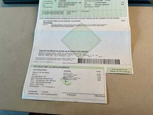 en laatste keuringsbewijs 04/01/2023.