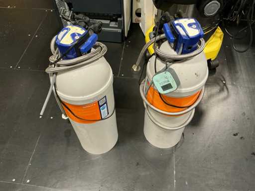 2 zelfreinigende Convotherm combisteamers. 5,7kW. 380V. Inclusief 2 ontkalkers, aflopen en aanvoeren. Inclusief 1 bidon cleaner. Metalen frame.