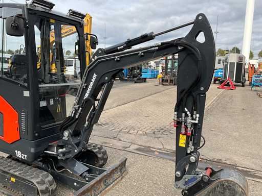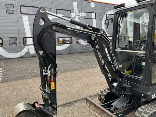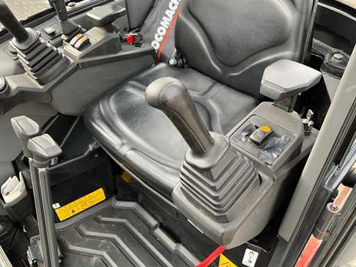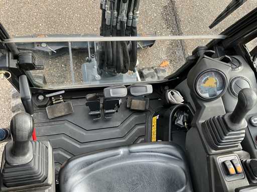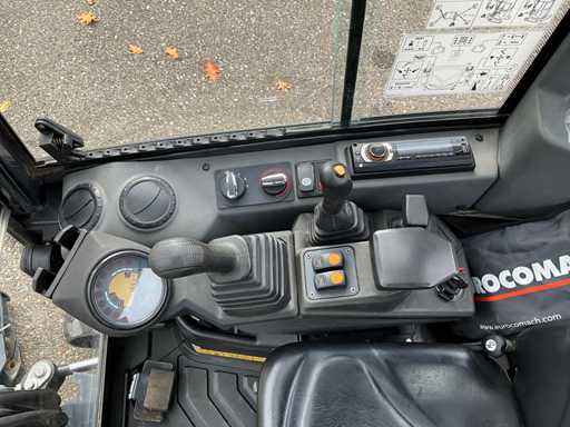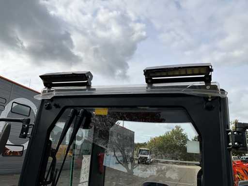 Hydraulische snelwissel, banaanbak 300mm, 2x extra hydraulische functie, zwenkgiek, schuifblad met verbreders, verstelbaar rijwerk, 2e rijsnelheid, LED verlichting, radio, kachel