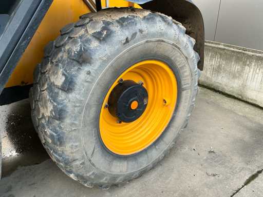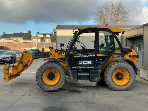 Voorzien van: brandschade machine, DualTech VT 2-in-1-transmissie naadloze overgang van hydrostatisch naar powershift, JCB Q-FIT opname, Max. reikwijdte 3,73 m, rijsnelheid 50 kph, max. hefvermogen 3.800 kg, max. hefhoogte 7m, JCB DieselMAX-motor.