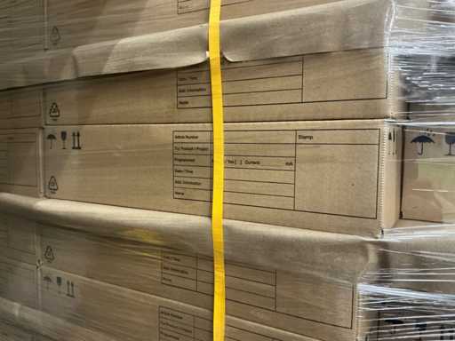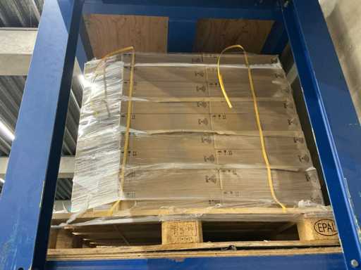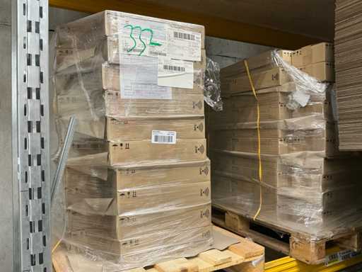 Staat op 7 a 8 pallets. De pallets zjjn inbegrepen en er is een heftruck ter beschikking om de drivers te laden.