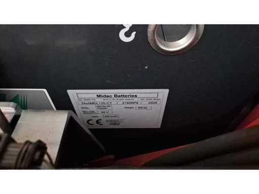 Voorzien van: bleuspot, verlichting, werkverlichting, achteruitkijkspiegel, Nonmarkingbanden, vierde functie op bord, nieuwe batterij van 2025, watervulkan, acculader nieuw, joystickbediening, rijrichtingschakelaar op armsteun