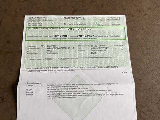 - Keuringsrapport geldig tot