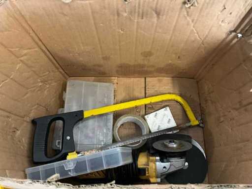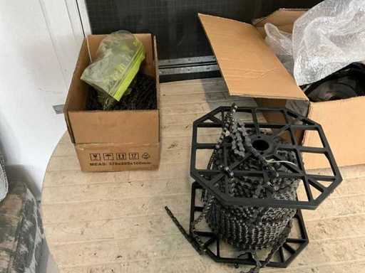 + partij handgereedschap, fietsketting op rol, afstel gereedschap voor fietswielen, 2x tafel + zetel