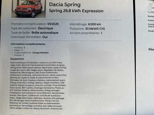 De uitrusting omvat airconditioning, een multimediasysteem met touchscreen, Apple CarPlay en Android Auto, Bluetooth, een boordcomputer, elektrische ramen en spiegels, stuurbekrachtiging, cruise control en snelheidsbegrenzer, evenals rijhulpmiddelen zoals ABS, ESP, hill start assist, rijstrookverlaatwaarschuwing en parkeersensoren. Het voertuig is ook uitgerust met verschillende veiligheidsvoorzieningen (voor- en zijairbags, bandenspanningsregeling, noodoproepsysteem), LED-verlichting en centrale vergrendeling met afstandsbediening.