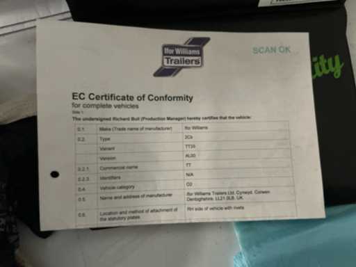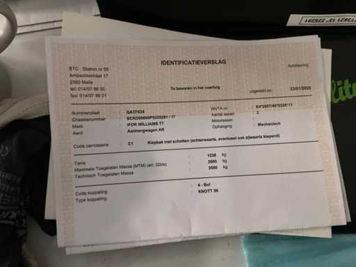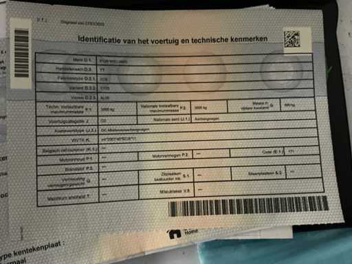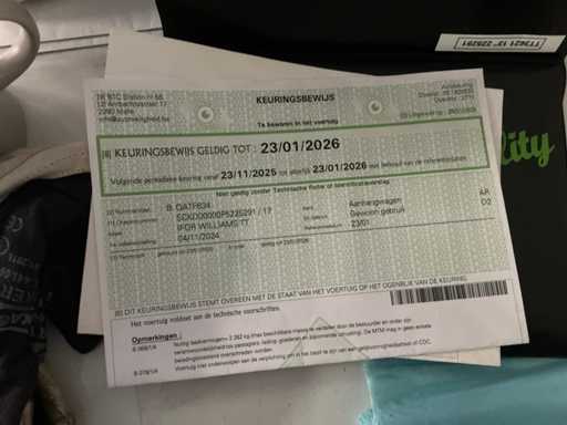 Aanwezige documenten: kenteken deel 1 en deel 2, identificatieverslag, keuringsbewijs, conformiteitsattest