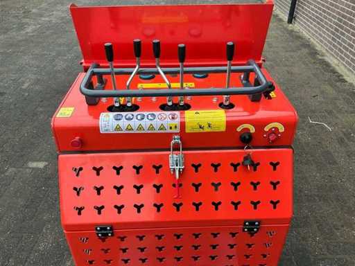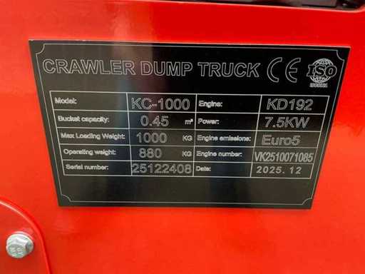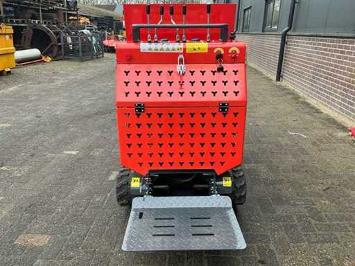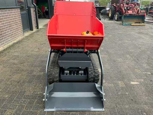 Voorzien van: schepbak, hoogkiepfunctie, 2 rijsnelheden, rupsen, 1 cilinder dieselmotor, sta platform, handbediening