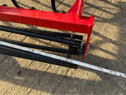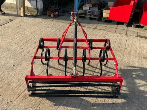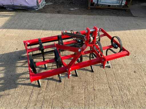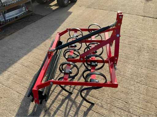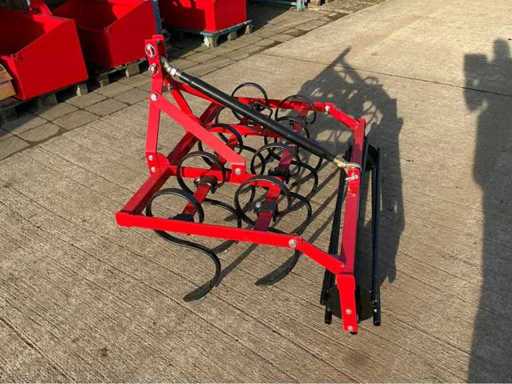 Degelijke triltandcultivator (woeler) met 9 veertanden en een werkbreedte van ca. 130 cm, geschikt voor grondbewerking achter compacte tractoren en minitractoren. Dit werktuig is ideaal voor het losmaken en verluchten van de bodem, het bestrijden van onkruid en het voorbereiden van het zaaibed. De stevige constructie en veertanden zorgen voor een goede werking op verschillende bodemtypes. Voorzien van driepuntsophanging en een achterste egalisatiebalk.