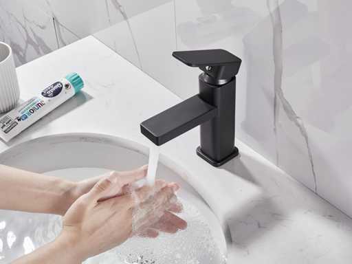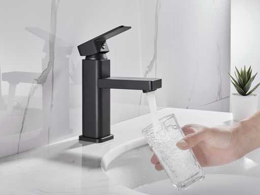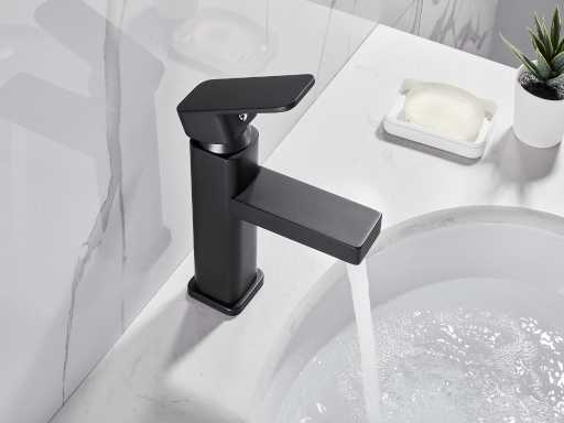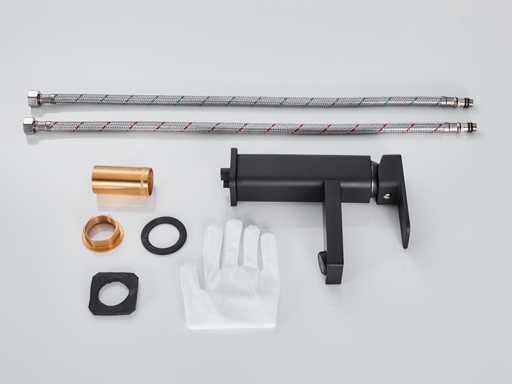 mengkraan met keramisch binnenwerk, materiaal zink, kleur chroom, hoogte 17 cm, voorzien van waterslangen met aansluitmateriaal