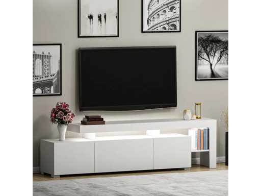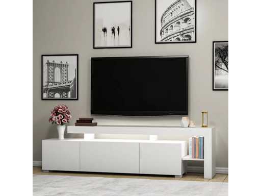 Tv-meubel in 18 mm dik melamine, witte afwerking.