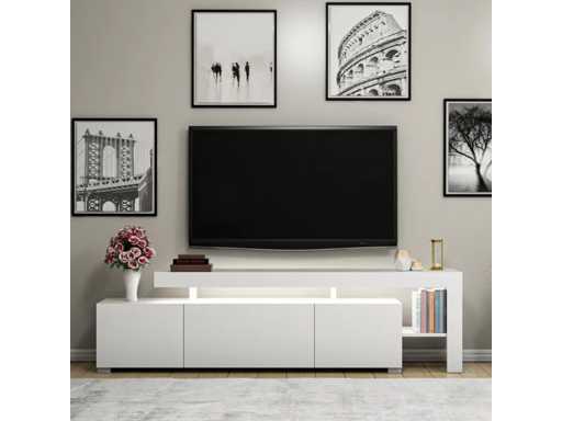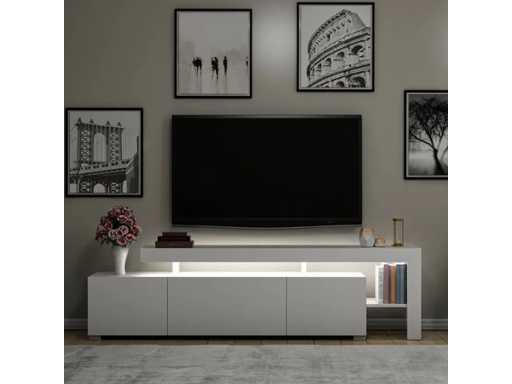 3-deurs melamine tv-meubel met witte afwerking en LED-verlichting