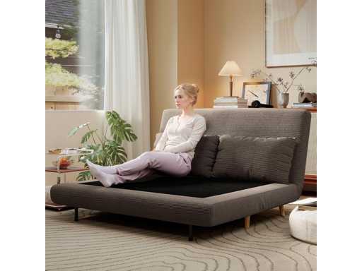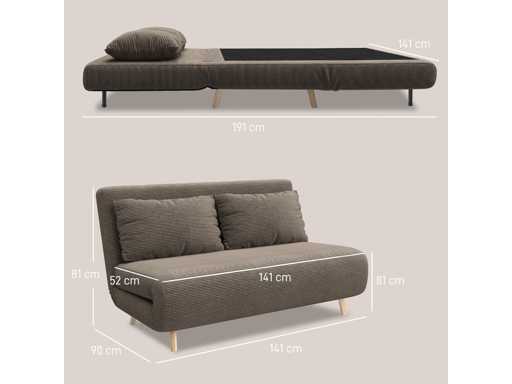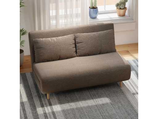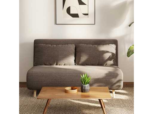 De corduroy-stoffen bekleding van het slaapbank is zacht aanvoelend, duurzaam en ademend.