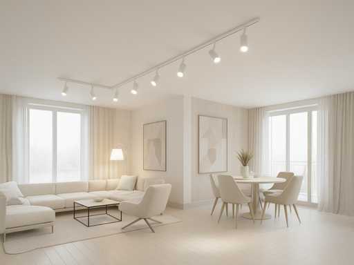 afdichting IP20, 1 stuk 100cm en 1 stuk 200cm rail, materiaal aluminium, bevestiging inclusief, 220-240V, 1 stuk door verbinder en 1 stuk L verbinding inclusief, product kleur zand wit, 9 stuk railspots GU10 armatuur afm. Ø 55 x 102mm draaibaar 350° en kantelbaar 90° materiaal aluminum kop en kunstof basis, bulb niet inbegrepen, geschikt voor binnen, SKU 828 SKU 826 SKU 906 SKU 908 SKU 1122