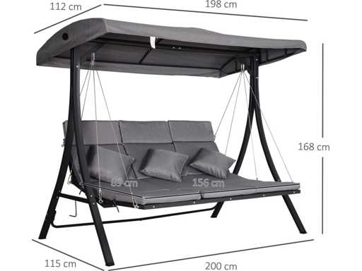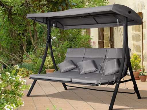 3-zits tuinschommel Verstelbaar dak Textileen Grijs