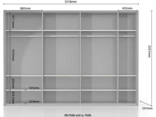 322cm kast, inclusief structuur en verlichting, soft-close functie