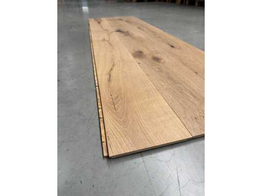 34,50 m2 Eiken meerlagen parketvloer kleur: Yek-101, kliksysteem, geschikt voor vloerverwarming, geborsteld en geolied, afmetingen: 1900x190x14mm 3mm toplaag