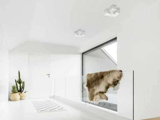 Deze unieke plafond armaturen passen goed in de woonkamer, keuken of gang, maar kunnen ook in slaapkamers, werkkamers of hobbyruimten worden gebruikt. De lampen zijn mat wit van kleur, maar kunnen dankzij het unieke materiaal ook met het plafond worden meegeschilderd, het eindresulaat is een design armatuur welke perfect en naadloos opgaat in de ruimte. De lampen zijn eenvoudig uit te breiden door meerdere samen te gebruiken of te koppelen, zo creëer je een uniek design welke in iedere ruimte net even anders is. Intec opbouw spots, Type: opbouwarmatuur, Afmeting:ca 15 x 24 x 30 cm Materiaal: Composiet, fitting GU10, aansluiting 230V. Overschilderbaar: Ja Dimbaar: Ja