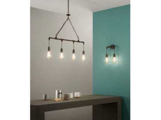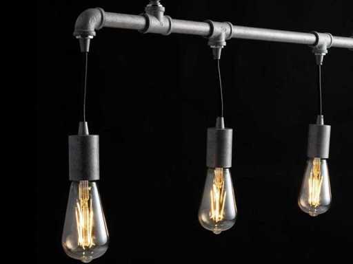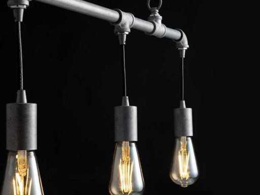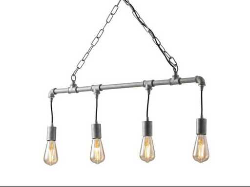 Industriele hanglamp voorzien van 4 lichtpunten met grote fitting geschikt voor gebruik in zowel commerciele als residentiele ruimten. De lampen worden op eenvoudige manier gemonteerd en zullen voor een zeer bijzondere uitstraling zorgen. Te gebruiken met iedere lichtbron met E27 fitting, (niet inbegrepen) Afmetingen ca 110 x 86 cm. I-AMARCORD-S4 hanglamp; Materiaal: Staal/aluminium Ja.Type: hanglamp, model: 8031414871964 dimbaar: ja. / Conditie: dit betreft een nieuw product, lotwaarde: €925,-