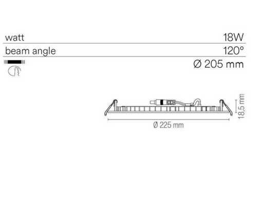 Ultralage led inbouwspots, geschikt voor alle zakelijke, professionele en residentiele ruimten, extra lage inbouwhoogte, gekoppelde led driver en direct fit klem systeem.De armaturen geven warm wit licht en zullen in iedere ruimte direct een goede licht uitstraling geven. De montage is nog sneller en eenvoudiger dankzij de geintegreerde led driver en het vernieuwde klem systeem. Type: INC-SLIM/18W NIK / 8031431521187 Lichtbron: inbegrepen, 18 Watt led. Lumen: ca 2000 Lm. Lichtbundelbreedte ca 120 graden. Afmetingen ca 24 x 1.85 cm, Conditie: nieuw. Lotwaarde: € 1240,-