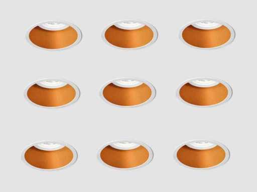 Diepgelegen inbouwspots geschikt voor gebruik in woonkamers, keukens, slaapkamers, maar kunnen ook in vochtige ruimtes worden gebruikt. De lichtbron ligt dieper waardoor het licht minder in de ogen zal schijnen. Volledig dimbaar, geschikt voor alle typen GU10 lichtbronnen, ook Philips Hue (niet inbegrepen) kunnen zowel voor hoofdverlichting als voor sfeerverlichting zorgen. Dimbaar: Ja. Lichtbron verwisselbaar: Ja. Dit betreft een nieuw product. Diameter: ca 80 mm Uitsparing ca 70 mm, hoogte: ca 50 mm. Materiaal: Aluminium. Kleur: Wit + goud interieur. Spatwaterdicht, Ja, IP54 Dit betreft een volledig nieuw product: Lotwaarde €760,-