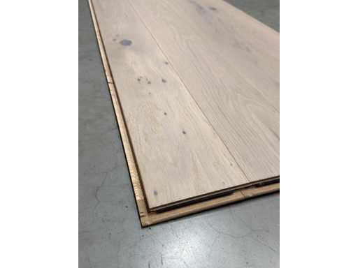 43,56 m2 Eiken meerlagen parketvloer, matt gelakt, geborsteld, kleur: 072, mes en groef te verlijmen, geschikt voor vloerverwarming