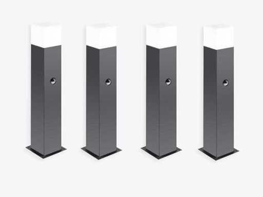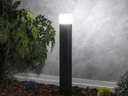 De Largo lampen serie zijn gemaakt van hoogwaardig aluminium afgewerkt in grafiet poedercoat. Met een hoogte van 45 cm zijn ze perfect voor installatie langs paden, patio's, terrassen, tuinen en veranda's. Dankzij de IP44-bescherming is de lamp bestand tegen regen, vochtigheid, stof en vuil. De lamp is voorzien van een bewegings sensor en kan daarmee voor een energiebesparing zorgen omdat hij zowel 100% aan kan zijn of alleen aan springen wanneer er beweging wordt gezien. Afmetingen: Ø80x500mm, voet Ø110mm, Kleur: Grafiet Zwart, Afwerking mat. Spatwaterdicht: Ja, IP44, Type: vloer lamp / grond armatuur Bijzonderheden: Dit product is volledig nieuw