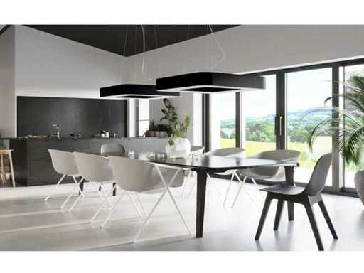 De Section hang lampen beschikken over een opalen doorlopende led lichtbron welke een uniforme lichtspreiding geeft. De hanglampen hebben professionele uitstraling en passen in zowel klassieke als moderne interieuren en kunnen in ontvangstruimten, spreekkamers, werkkamers of doorloopruimten worden gebruikt, maar ook in toonzalen of studeerruimtes. Vorm: vierkant, behuizing: zwart, opalen diffusor, Lichtkleur: 4000K, Lichtbundel ca 140 graden, 48 Watt Led Afmeting ca.: 600 x 80 x 1000 mm. In hoogte verstelbaar: Ja. Aansluiting: 230 Volt. Lotwaarde: € 892,-