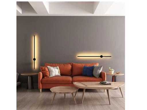 Modern vormgegeven wandlampen welke het licht op een indirecte wijze rondom het armatuur schijnen. Het armatuur is discreet zwart van kleur en sluit goed aan bij zowel in klassieke als moderne interieuren. De wandlampen kunnen op eenvoudige manier aan de wand worden gemonteerd en zullen direct voor unieke uitstraling in de woonkamer, in de slaapkamer, op de gang of in speelkamers kunnen zorgen. Afmetingen 60 x 7.5 x 3.5 cm. Inclusief led lichtbron: Ja. Sterkte 12 Watt, kleur licht: warm wit. Type: wandarmatuur, Conditie: nieuw