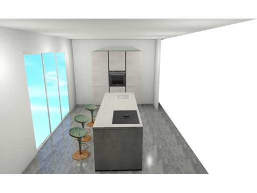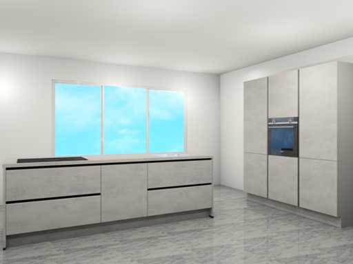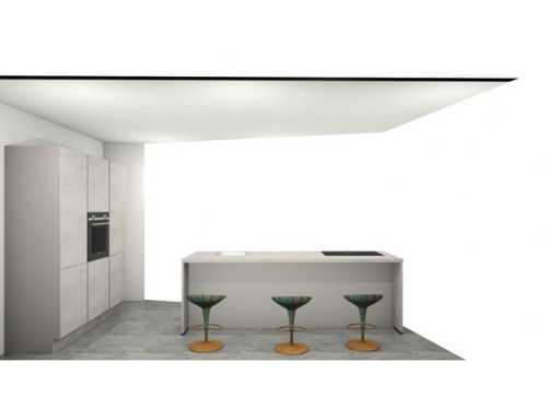 Nobilia Riva Beton grijs eilandkeuken met kastenwand
