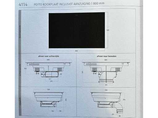 "Wave Peyto 4114.01 Inductie afzuiging" 80cm, 4-kookzones. Zonder kraan en accesoires. Let op! Staat niet opgesteld in de showroom, enkel via 3D tekening; wordt geleverd ongebruikt in doos.