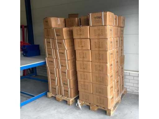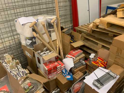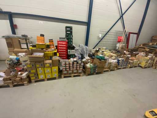 Grote partij diverse ongebruikte bevestigingsmaterialen, handgereedschap, werkkleding en installatiematerialen met een totale winkelverkoopwaarde van circa 95000,00 euro Verdeeld over 27 pallets. Pallets zijn inclusief. Zie PDF bestanden voor een compleet overzicht van de inbegrepen materialen. Per pallet zit een overzicht meegeleverd van de inhoud van de betreffende pallet.