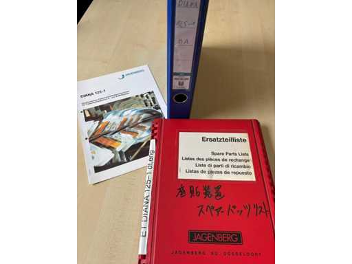 Voorzien van: Ero Graco (pomp) lijmsysteem met 3 koppen, Lijmwiel, Jagenberg DBS 01, De Jagenberg Diana 125 is een industriële vouw- en lijmmachine met een maximale materiaalbreedte van 1250 mm, minimale doosbreedte van ca. 45 mm, geschikt voor massief karton tot 800 g/m² en B-golfkarton, met een verwerkingssnelheid tot 450 meter per minuut, ondersteuning voor rechte lijn, crash-lock/autolock, voorzien van lijmsystemen ERO Graco pomp-/lijmsysteem,