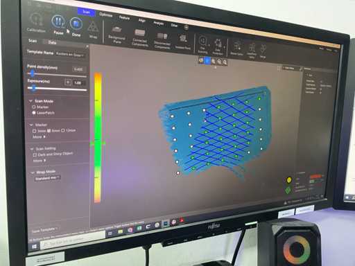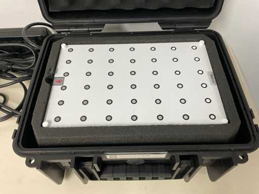 voorzien van: Scanner, calibratie plaat, dongle (werkend via ScanViewer), voedingskabel, signaalkabel, transportkist, documentatie