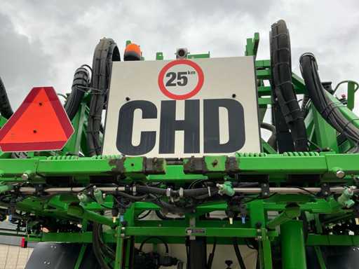 CHD F4139A veldspuit, bouwjaar 2014, geproduceerd door CHD Eefting B.V. te Ter Apel. Uitgerust met boordnetcomputer, schoonwatertank en verlichting. De machine heeft een tankinhoud van 4300 liter, een pompcapaciteit van 500 liter per minuut en een spuitboombreedte van 37 meter. Eigen gewicht 5110 kg, totale afmetingen 6500 × 3000 × 3500 mm. Voorzien van bandenmaat 580/70R42, kenteken LBS-52-V, serienummer 1408. Niet zelfrijdend, CE-gemarkeerd.
