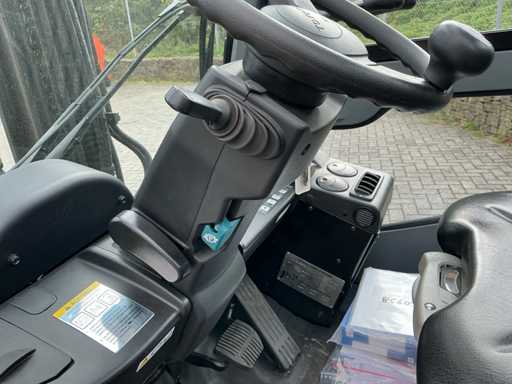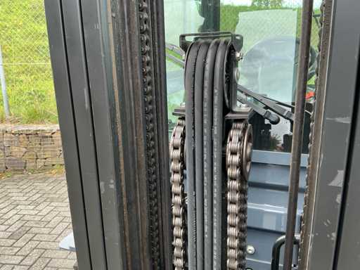 Voorzien van: triplex mast, side-shift, ruitenwissers, led-werklampen, schuiframen, trekhaak, Grammer mechanisch geveerde stoel, documentatie, verwarming, knipperlicht, documenten houder.