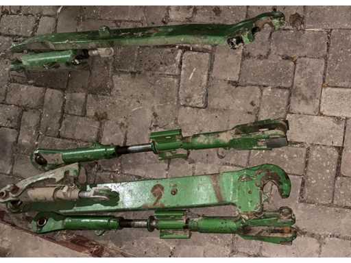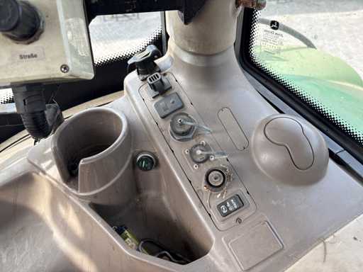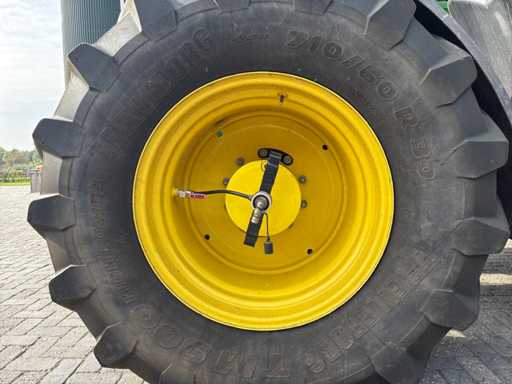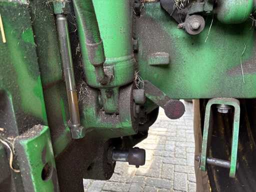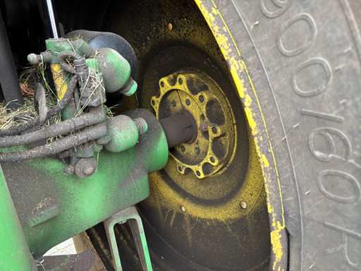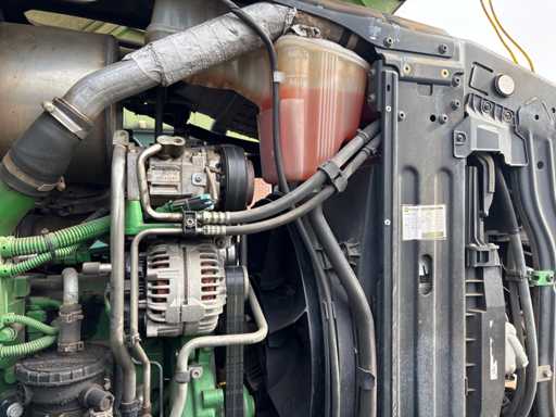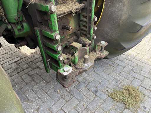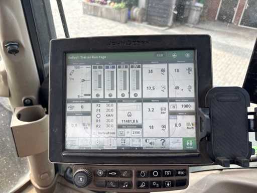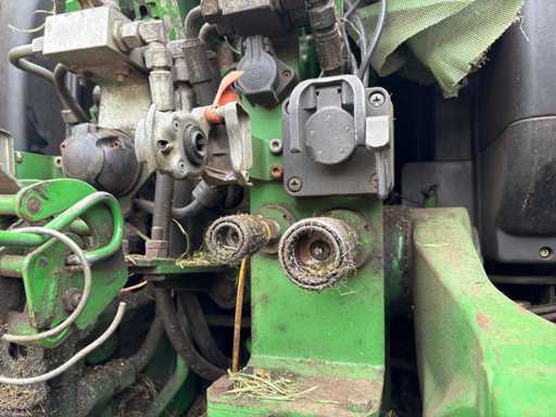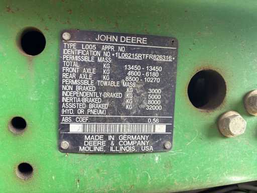 John Deere 6215R voorzien van luchtdrukwisselsysteem, 4DW hydraulische ventielen, Adblue, aanhangwagen luchtremysteem, hydraulische remventiel, Isobus, fronthefinrichting met PTO, werkverlichting rondom, spatbordbediening, bedieningsterminal.