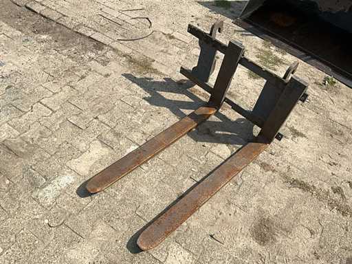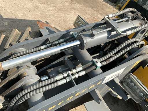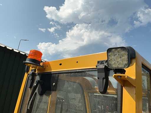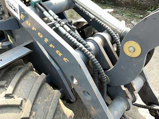 Voorzien van: pak en palletbord (lepellengte 1100mm), hydraulische snelwissel, extra functie op de giek, led werkverlichting, arretering ventiel, dubbeldeurs, graafbak 1630x800, ruitenwissers