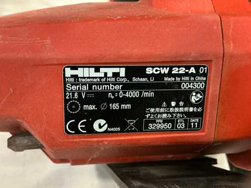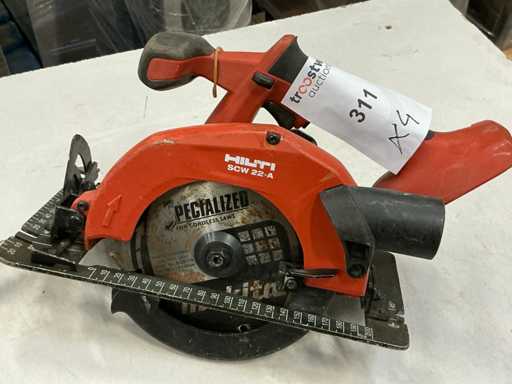 - Cirkelzaagmachine type SCW 22-A, zonder accu, zonder acculader, S/N 004300.