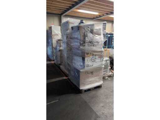 Conditie: gebruikt; afmetingen kastenwand circa 175x60x223 cm; reeds gedemonteerd en ingepakt op pallets. (afstapelen, omruilen of statiegeld per pallet); pallets zijn niet inbegrepen; statiegeld betalen bij afhalen, of pallets afstapelen; werkblad niet ingepakt op pallets (26-2DE-03629)