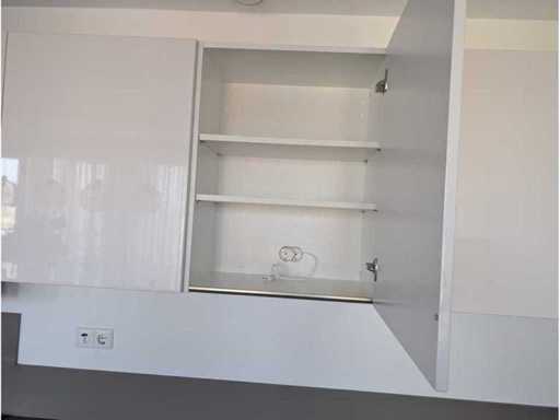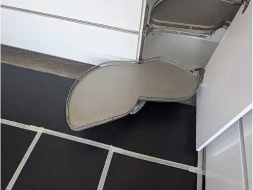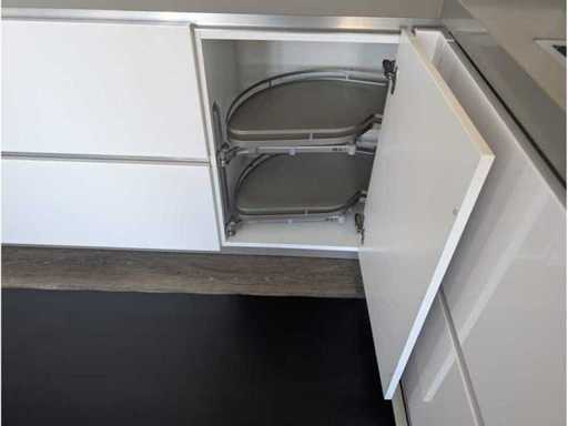 Conditie: gebruikt; 337x60x95 cm; afmetingen rechterdeel circa 408x60x171 cm; reeds gedemonteerd en ingepakt op pallets; zonder eettafel. (afstapelen, omruilen of statiegeld per pallet); pallets zijn niet inbegrepen; statiegeld betalen bij afhalen, of pallets afstapelen; werkblad niet ingepakt op pallets (26-2DE-03639)