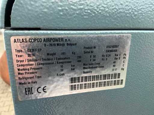 2016 Atlas Copco GX3FF EP Schroefcompressor