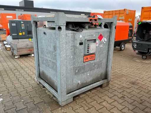 gegalvaniseerd staal; hijsogen; stapelbaar; heftruck vorksleuven; vulgraad meter; openklapbaar deksel; 1x afsluitdop;