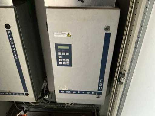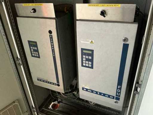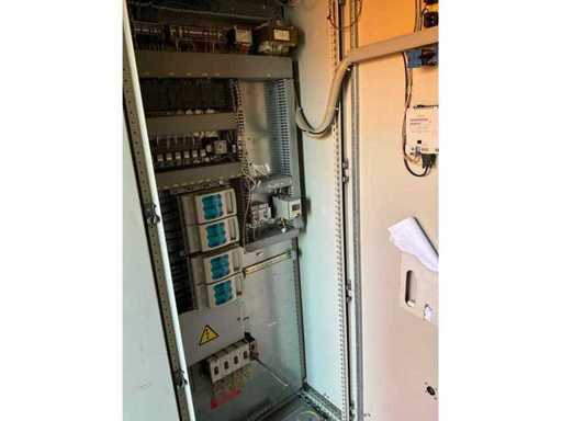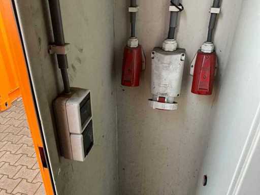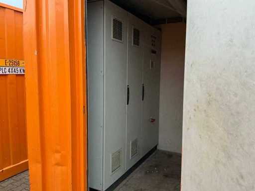 5Ft-container uitgerust met een PLC-besturingssysteem voor het beheren van twee motoren van elk 45 kW, stroomaansluiting 400 Volt; verlichting; twistlocks; heftruck vorksleuven;
