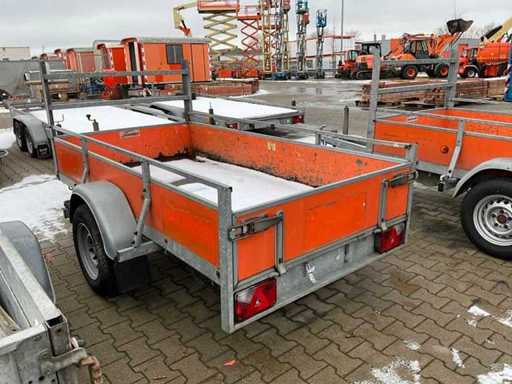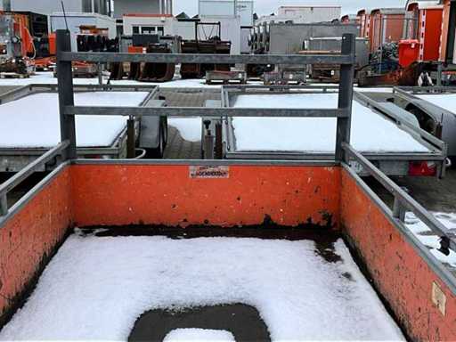 lengte 3900 mm; breedte 1750 mm; hoogte 1500 mm; gegalvaniseerd staal frame; hout schotten; koprek; neuswiel; (de koper dient bij transport over de weg zelf te voorzien in een geldig kenteken; een 7 of 9 polige aansluitstekker of verloopstuk met kabel (verlengsnoer kan ter plaatse tegen betaling aangekocht worden); eventueel extra lichtbalk); zonder kentekenpapieren; zonder gelijkvormigheidsattest;