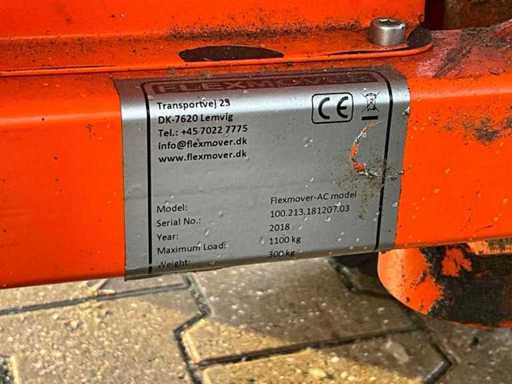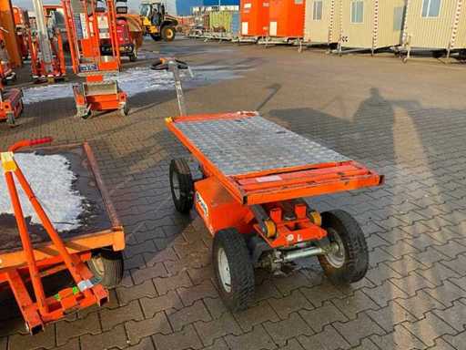 bedieningsbeugel; volrubber banden; maximale draaglast 1100 kg; plateau afmeting 1600x700 mm; lifthoogte 540-680 mm; working condition