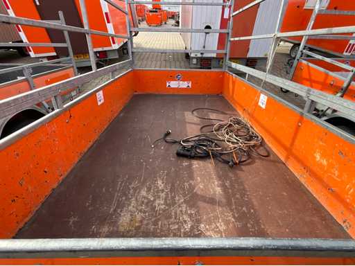 lengte 3900 mm; breedte 1800 mm; hoogte 1500 mm; zonder huif; gegalvaniseerd staal frame; hout schotten; koprek; zonder aanhangwagen koppeling; verlichtingkabel te vernieuwen; (de koper dient bij transport over de weg zelf te voorzien in een geldig kenteken; een 7 of 9 polige aansluitstekker of verloopstuk met kabel (verlengsnoer kan ter plaatse tegen betaling aangekocht worden); eventueel extra lichtbalk; zonder kentekenpapieren; zonder gelijkvormigheidsattest;
