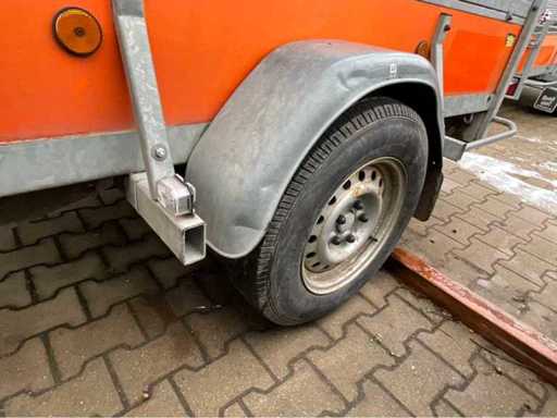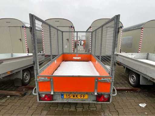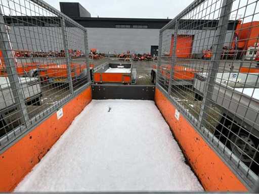 lengte 4000 mm; breedte 1800 mm; hoogte 1800 mm; groenaanhanger; gegalvaniseerd staal frame; hout schotten; gegalvaniseerd draadstaal opbouw; draadstaal frame achterzijde ontbreekt; neuswiel; oplooprem; (de koper dient bij transport over de weg zelf te voorzien in een geldig kenteken; een 7 of 9 polige aansluitstekker of verloopstuk met kabel (verlengsnoer kan ter plaatse tegen betaling aangekocht worden); eventueel extra lichtbalk; Nederlandse kentekenpapieren; zonder gelijkvormigheidsattest;