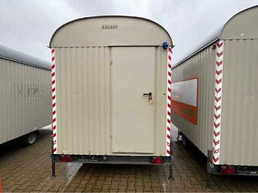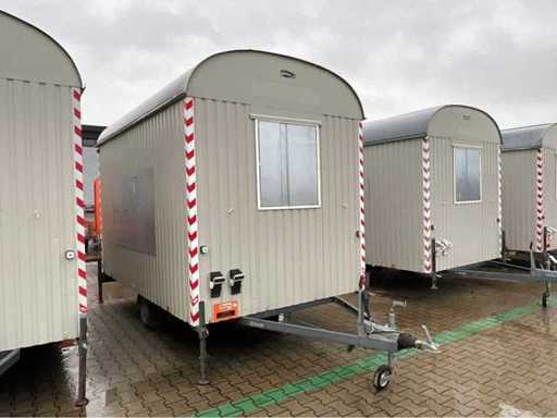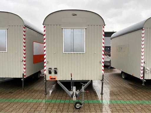 staalplaat corpus; geremd; neuswiel; 4x stelvoet; kogelkoppeling en transportverlichting; 1x deur; raam voorzien van gegalvaniseerd staal luik; tafel; 2x zitbank; (de koper dient bij transport over de weg zelf te voorzien in een geldig kenteken; een 7 of 9 polige aansluitstekker of verloopstuk met kabel (verlengsnoer kan ter plaatse tegen betaling aangekocht worden); eventueel extra lichtbalk; Duitse kentekenpapieren; gelijkvormigheidsattest; (M-U5436)